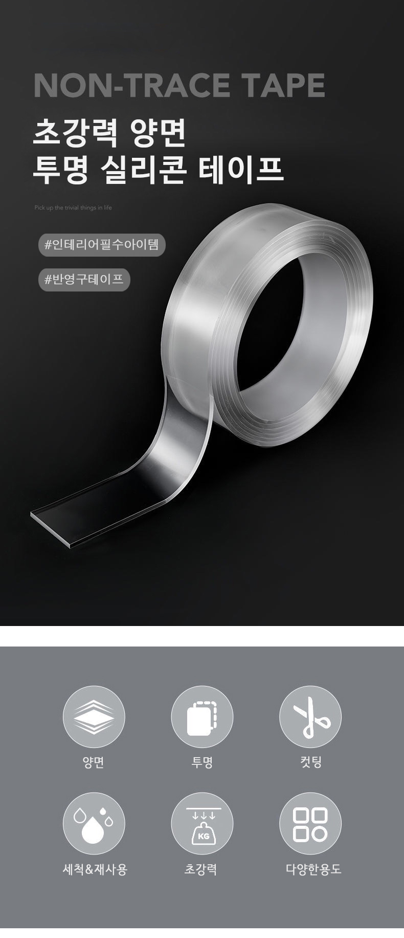 위와 같이 양면 테이프도 있고 단면 테이프도 있다